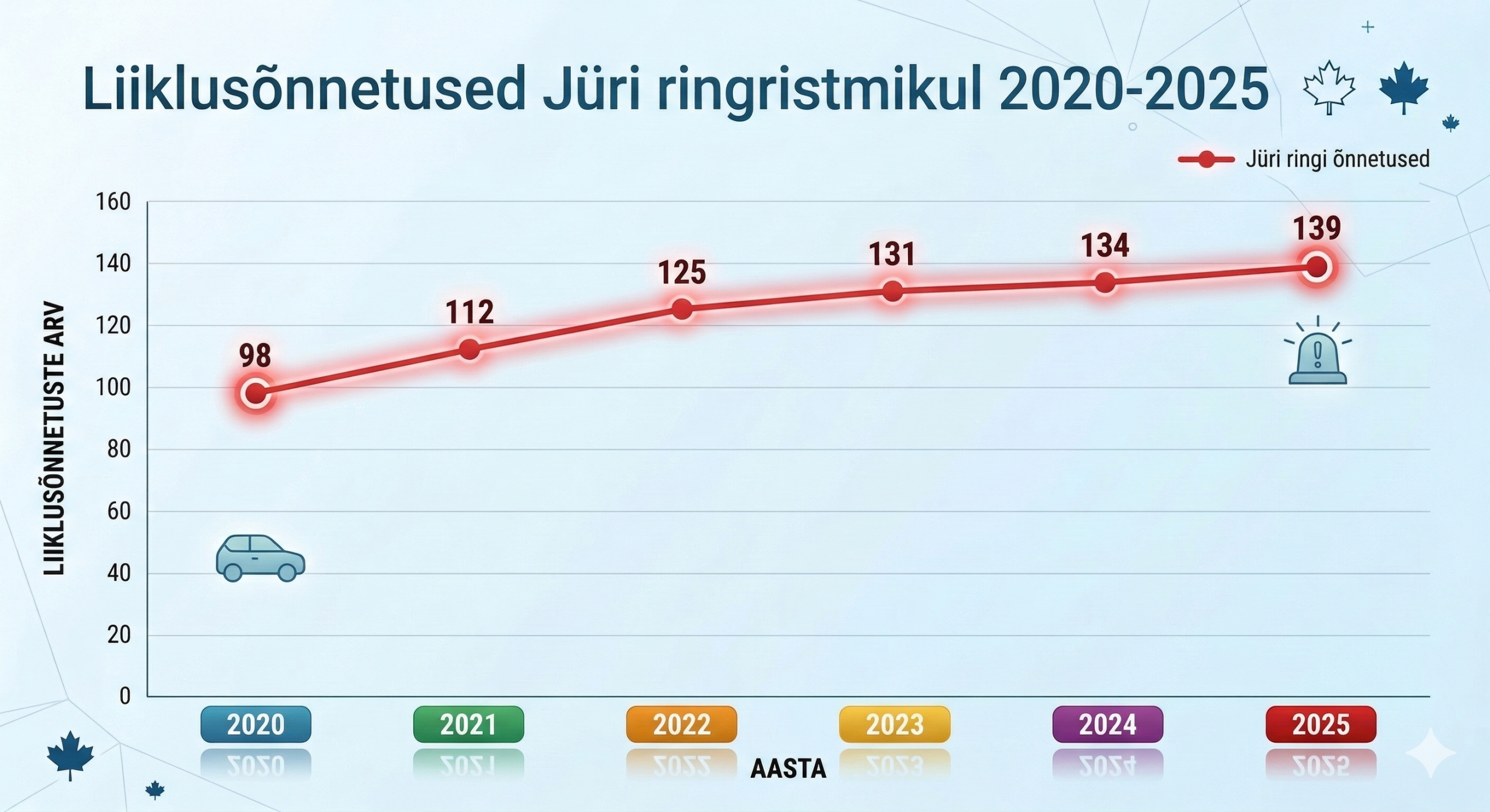 Aastaid on Jüri ringi ringristmik olnud eesti üks liiklusohtlikumaid kohti. Koroonapiirangute ajal, 2020. aastal registreeriti seal 98 liiklusõnnetust, mis kasvas 2021. aastal 112-ni. 2022 toimus sealsel ringristmikul 125 ja aasta hiljem 131 avariid. 2024. aastal sai kirja 134, 2025 139 liiklusjuhtumit.