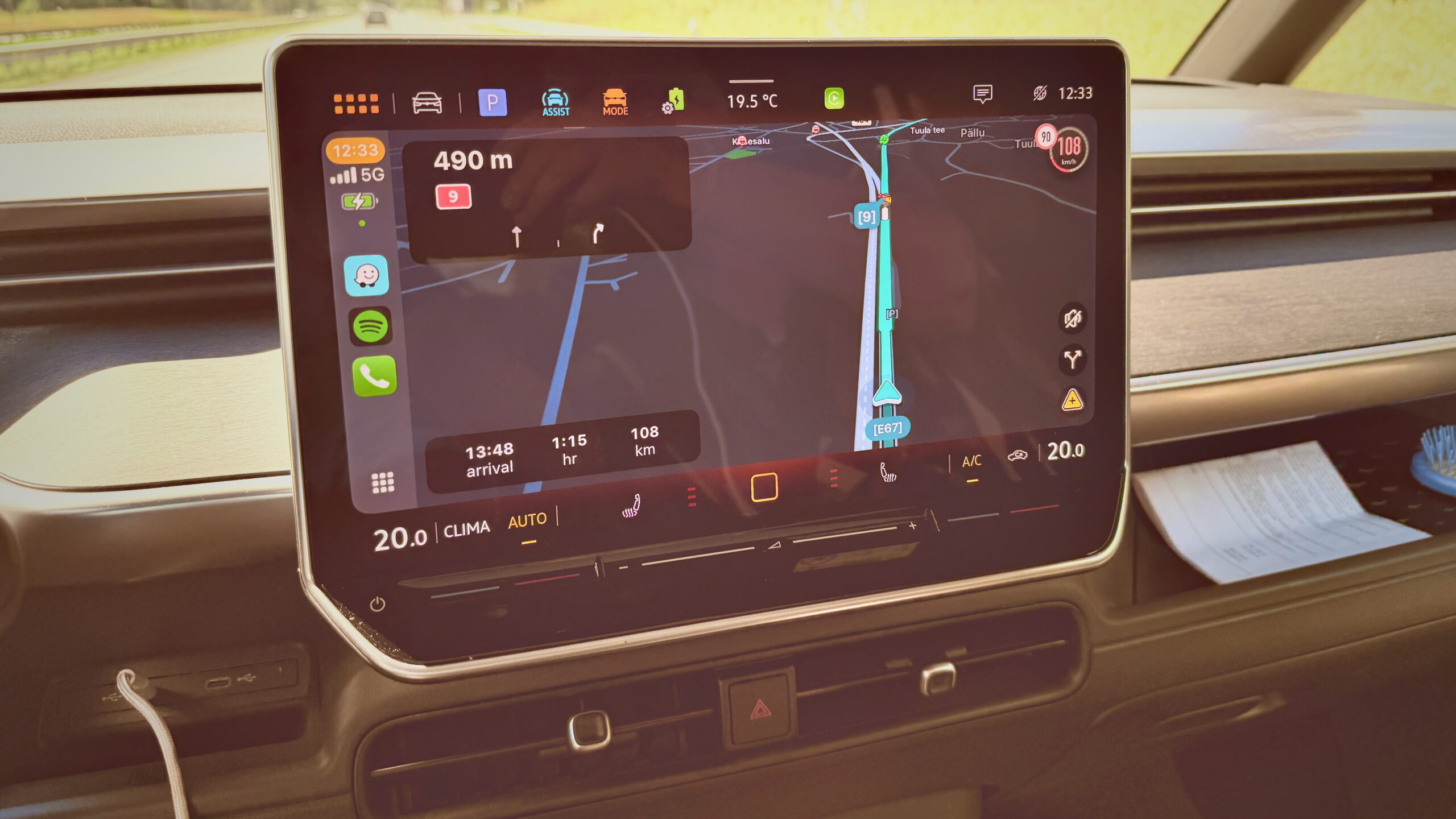 Kui telefoni paarimine käis kahe sekundiga ja automaatselt, siis Telia levialast väljudes jäi Waze loopima, GPS pani segast. See-eest Vikerraadio mängis veatult.