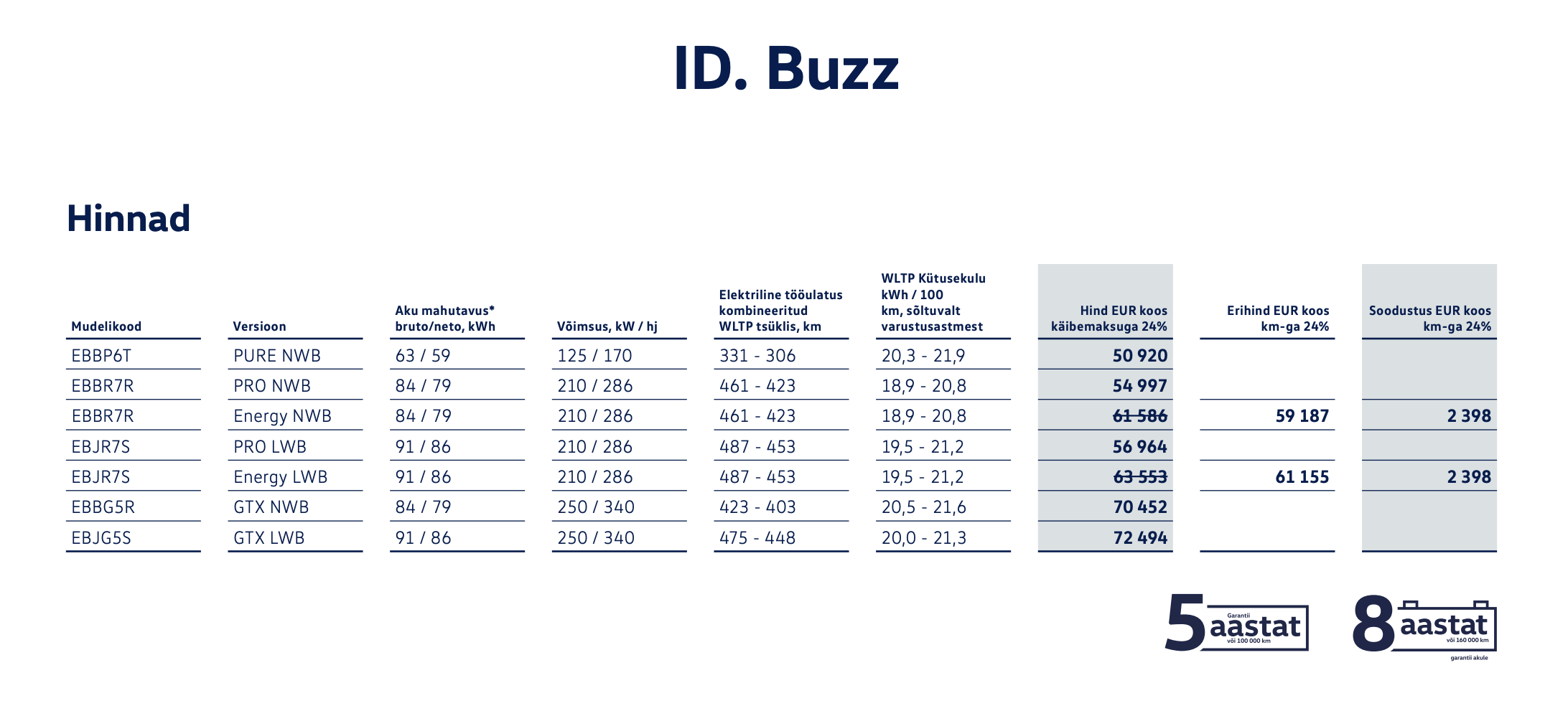 Meil testis olnud ID. Buzz GTX on läbinud mudelivärskenduse, Eestis esitleti seda mullu Tartu Motoshow-l. Muutused on üsna marginaalsed: multimeediasüsteem on uuenenud, lastehaigused ja tarkvaralised mured (peaaegu) lahendatud. GTX pakett lisab sõidukile võimsust (250 kW), nelikveo ja (sõnades) sportlikkust.