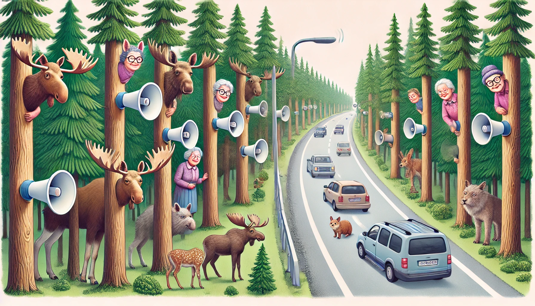 Myänmäentie põhjapoolsele ristmikule on paigaldatud aga helimajakas, mis uluki lähenedes aktiveerub – seal hakkab loomadega kõnelema vanem kõrge naisehääl. “Appi, vanaema!” – peletus toimib suurepäraselt, kitse ja põdra jaoks on vanema hääle helisagedus talumatu ning nad lasevad jalga. Häälenäited on saadud Soome rahvusarhiivist. “Vanaema” räägib oma argipäevatoimetustest ja pajatab muid lugusid – teadlased usuvad, et ka autojuhi jaoks oleks sel häälel korralekutsuv mõju.